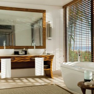 66 stand alone villas with private deck either overlooking the ocean or the gardens. Every one features satellite TV, CD/DVD player in the living room, mini bar, direct dial telephone, hairdryer, mosquito nets, personal safe, tea and coffee making facilities, broadband internet access, air-conditioning and overhead fans in the living room and bedrooms.