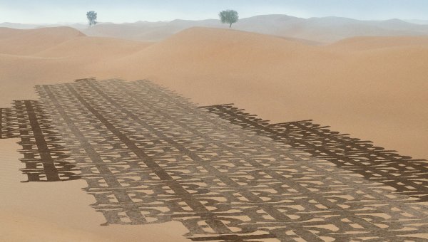 The transformation of land happened at the unexpected site of Dubai dessert. ‘If you create something in the desert, it will always cover it up – it has that ephemeral nature to it. The desert is unforgiving. But when you go out into the desert, it is always a collaboration with nature.’, said Nathaniel A. Alapide. He succeeded in making the desert a canvas that fabulously celebrates Burberry monogram.