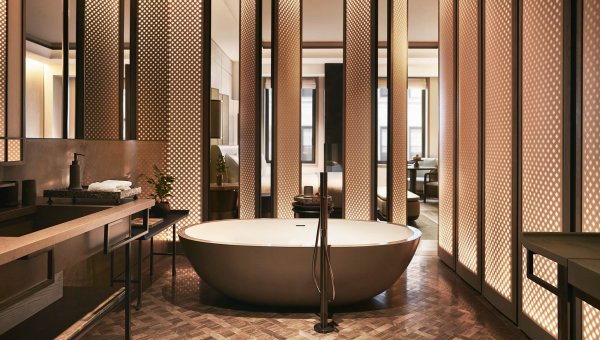 An invitation to switch off from the outside world, every suite also offers a functioning fireplace, a first in New York City, while bathrooms are opulent and oversized with oval soaking bathtubs, marble rain showers, and double vanities.