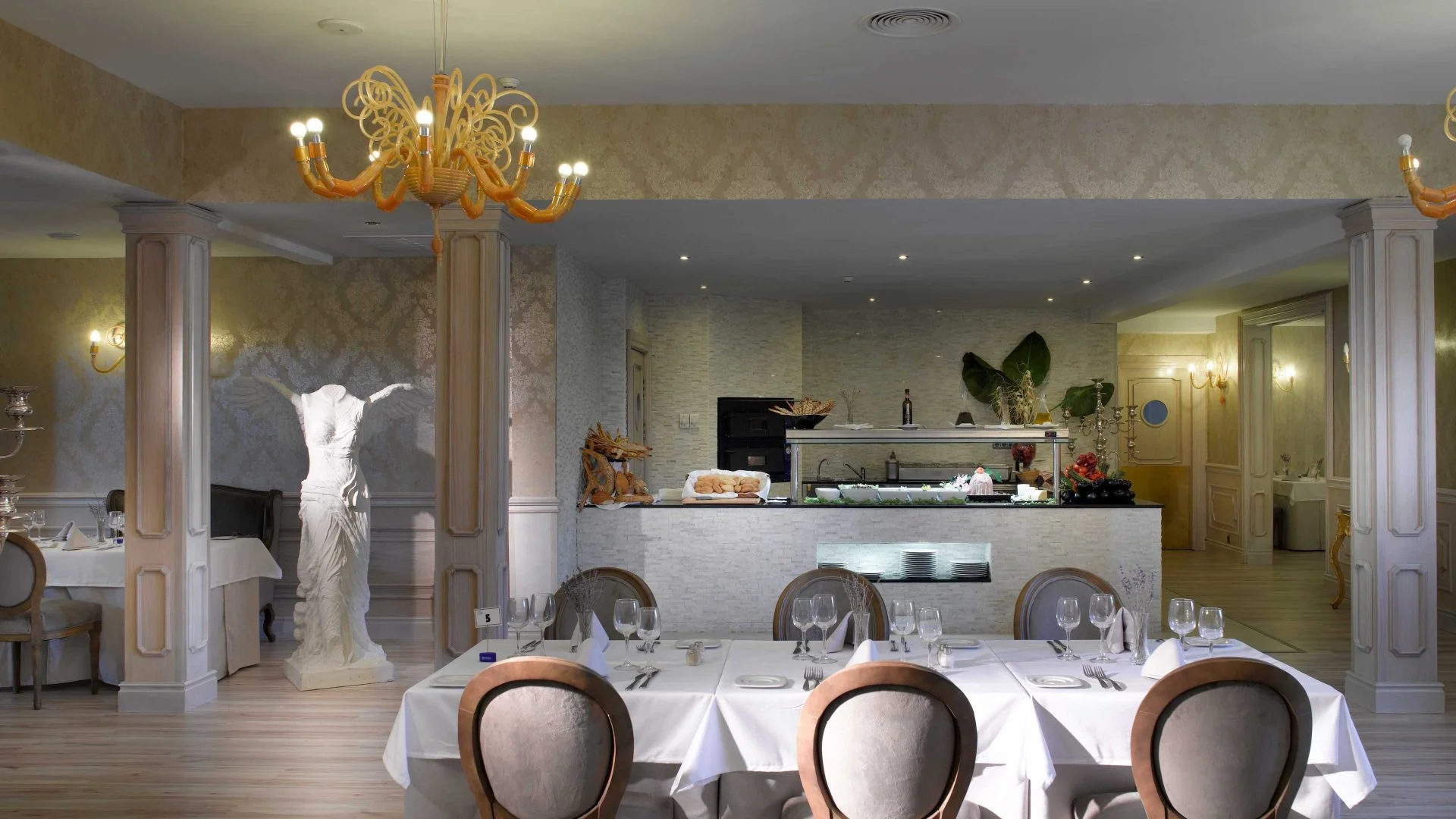 The hotel features 3 swimming pools more than 1,700 square metres and a chill out zone to relax near d´en Bossa beach. Sports facilities include 7 tennis courts, spa and wellness area. Two thematic restaurants, varied buffet and two bars ensure plenty of choices during your stay. Top quality cuisine and drinks are combined with a relaxed environnment.