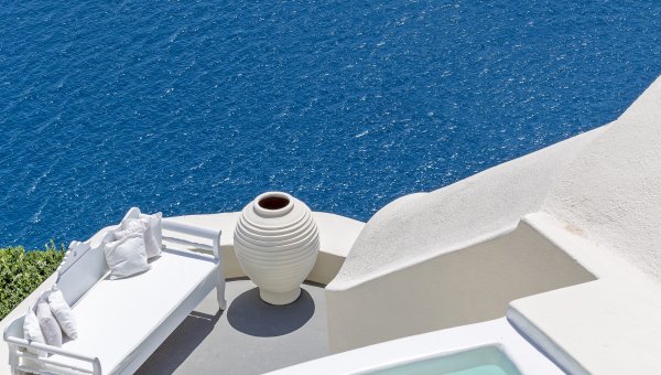 Canaves Oia Hotel & Suites – Perched on the cliffs of Oia, this hotel offers luxury suites and villas that blend classic Grecian architecture with modern amenities. Each suite has a private balcony with a view of the caldera, perfect for enjoying a sunset in solitude.